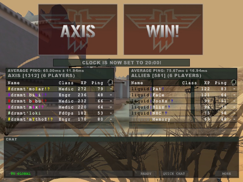 Karottes-Gemüsegarten | ET | Team 6on6 | Liga 4 Fun 6on6 | 6on6 | Fueldump, Oasis | 2:0 | |